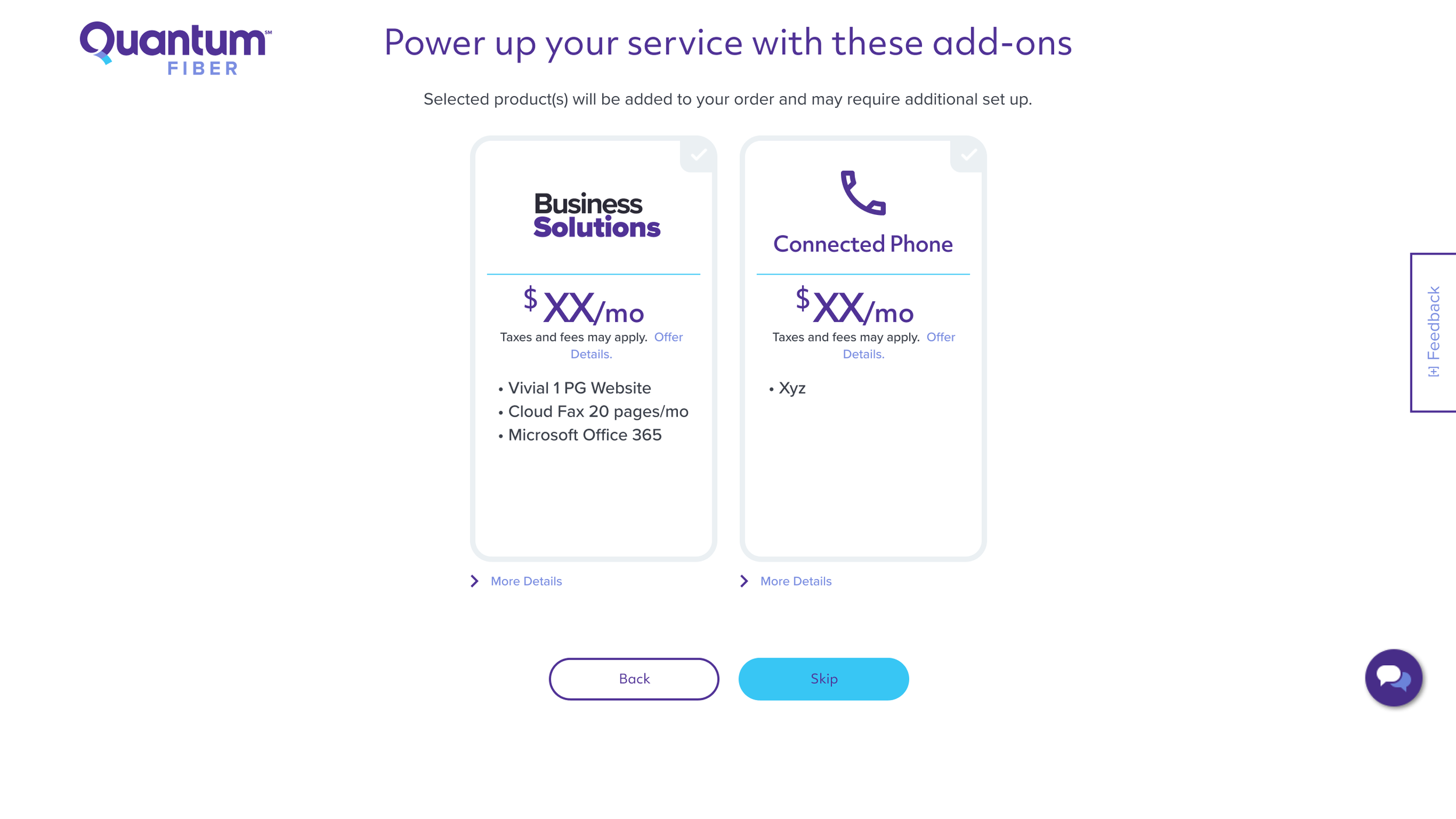 Business leaders challenged our team to enhance both the UX and UI design, requiring us to integrate add-ons into the flow, notify users when Quantum Fiber isn't available at their address, and promote a managed WiFi option. Additionally, we were tasked with designing for edge cases, clearly communicating the next steps, and incorporating updated legal statements.